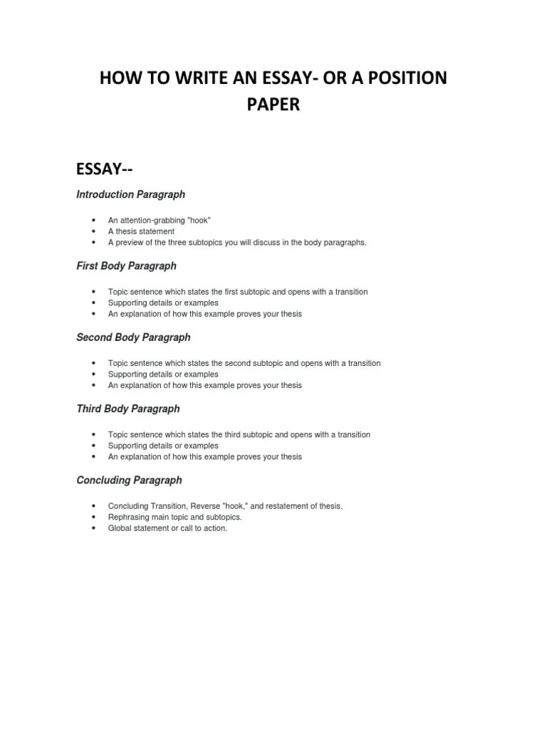 The left and right margins must both have straight edges. Sample of a position essay … Margins must be 2.54 cm or 1 inch for the entire paper. Font must be times new roman, size 12. Position paper instructions example #1: